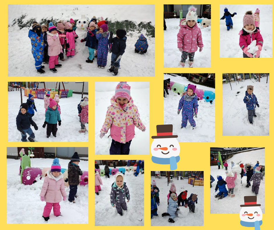 - Kotki skorzystały z pięknej pogody i wybrały się na zimowe zabawy na śniegu. Szaleństwo na śniegu było cudowne, powstały orzełki, aniołki, a nawet udało się ulepić bałwana.