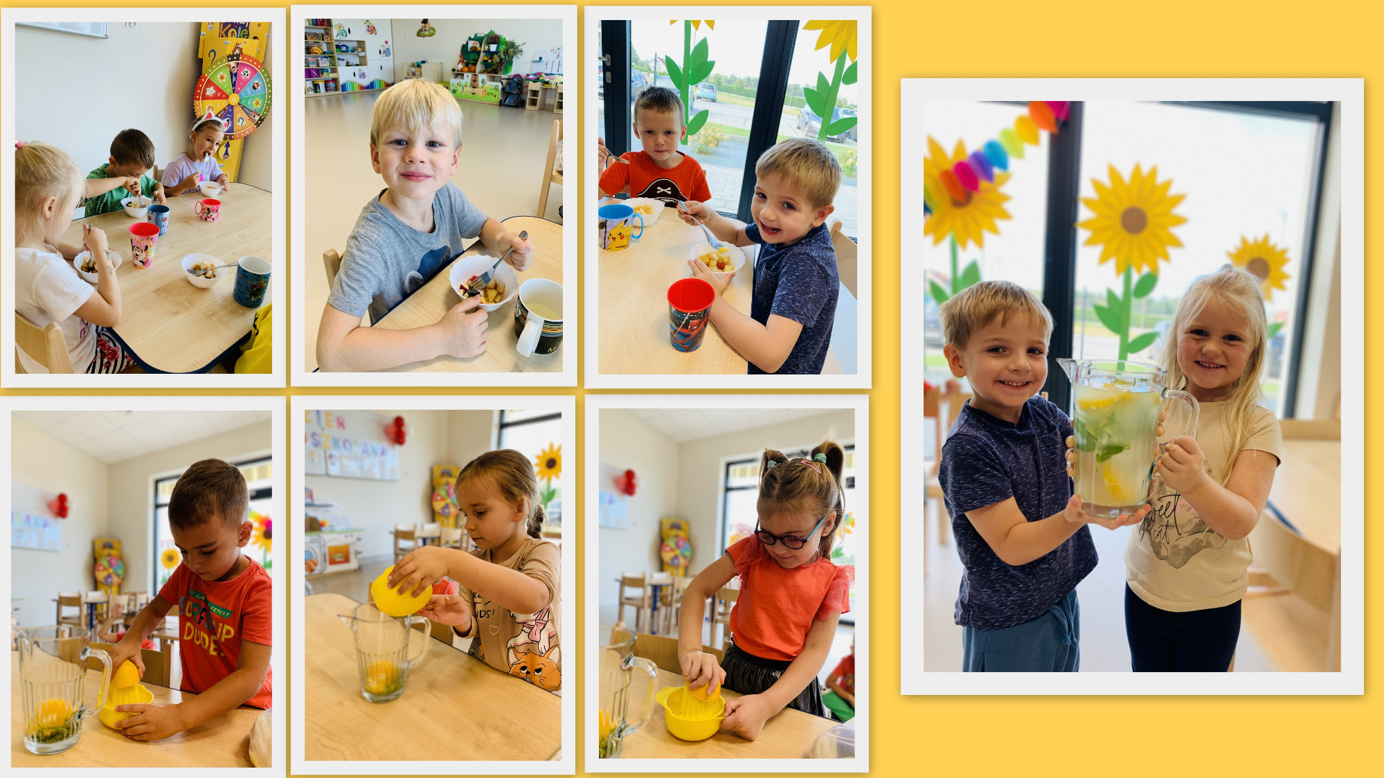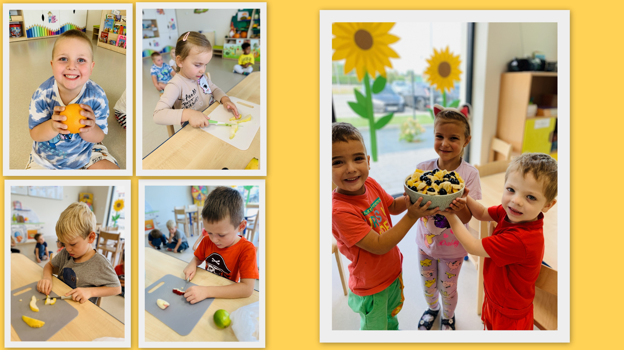 - Z okazji Dnia Przedszkolaka, w naszej grupie odbyło się wiele zabaw muzyczno- ruchowych, tanecznych oraz zabaw z wykorzystaniem chusty animacyjnej. Przedszkolaki czerpały wiele radości z zabaw, a także malowania farbą za pomocą paluszków. Z tej wyjątkowej okazji wykonaliśmy samodzielnie sałatkę owocową i lemoniadę, które następnie wspólnie degustowaliśmy celebrując te wesołe chwile.