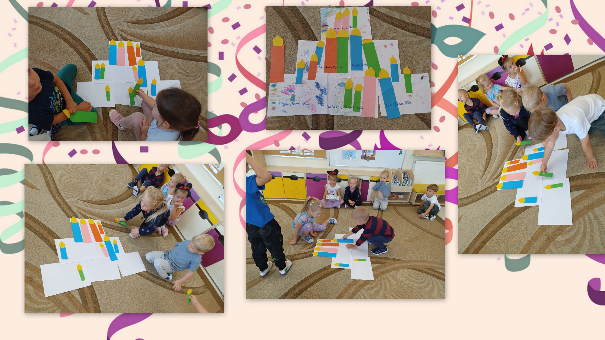 W piątek obchodziliśmy Dzień Przedszkolaka, święto wszystkich przedszkolaków. Zabawę zaczęliśmy od wymieniania rzeczy, które są niezbędne podczas podobnych uroczystości. Losowaliśmy świeczki na tort, opisywaliśmy ich cechy charakterystyczne. W grupach dekorowaliśmy warstwy tortu i stworzyliśmy nasz grupowy tort. Nie zabrakło również „tańców wygibańców”. A na koniec mała niespodzianka – prezencik dla każdego.