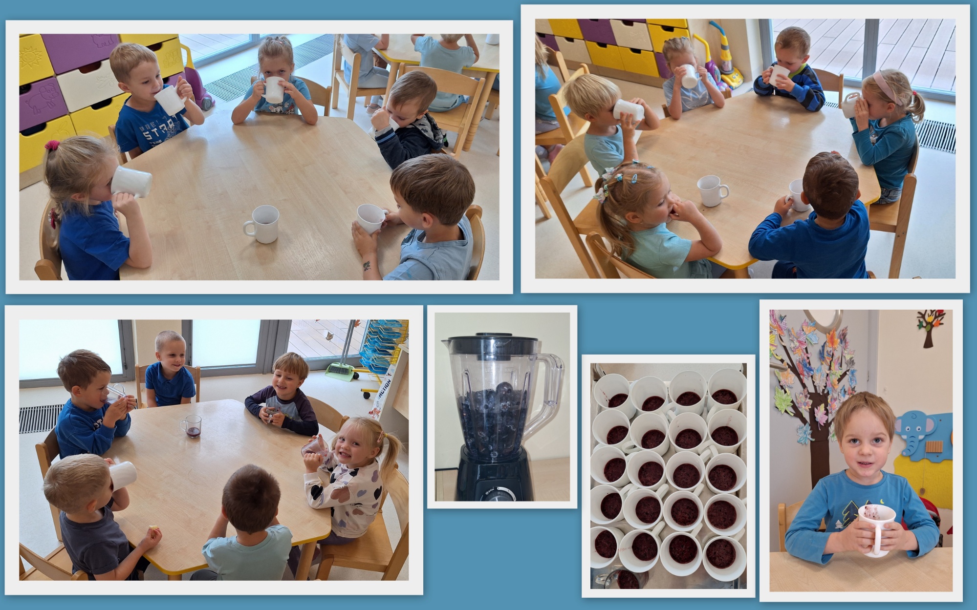 W ubiegły poniedziałek zrealizowaliśmy kolejne zajęcia z autorskiego programu edukacyjnego pt. ,,Kolorowi, sokowi artyści". Tym razem wszyscy ubraliśmy się na niebiesko, a owocem, który poznawaliśmy była borówka amerykańska. W tym dniu dzieci zastanawiały się, co jeszcze może być niebieskie, słuchały o przygodach boróweczki, przechodziły niebieski tor przeszkód, wykonywały własne borówki. Nie zabrakło oczywiście najważniejszej rzeczy, czyli robienia soku z borówek, który bardzo dzieciom zasmakował. 💙